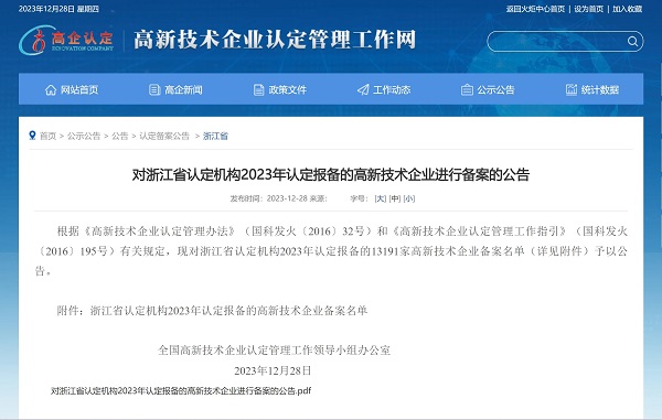 2023年12月28日,全國高新技術(shù)企業(yè)認(rèn)定管理工作領(lǐng)導(dǎo)小組辦公室發(fā)布《對浙江省認(rèn)定機構(gòu)2023年認(rèn)定報備的高新技術(shù)企業(yè)進(jìn)行備案的公告》,中國能源工程集團(tuán)有限公司(以下簡稱“中國能源工程集團(tuán)”)所屬中清能源(杭州) 有限公司...